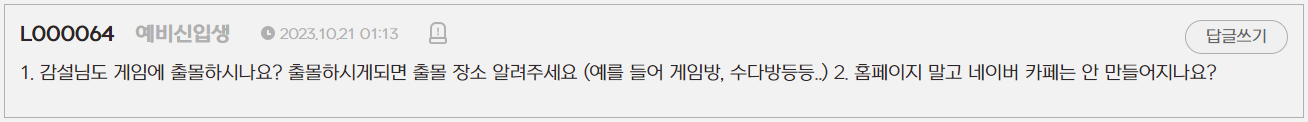 세번째는 CM 게임 출몰과 공식 홈페이지에 대한 질문인데요!