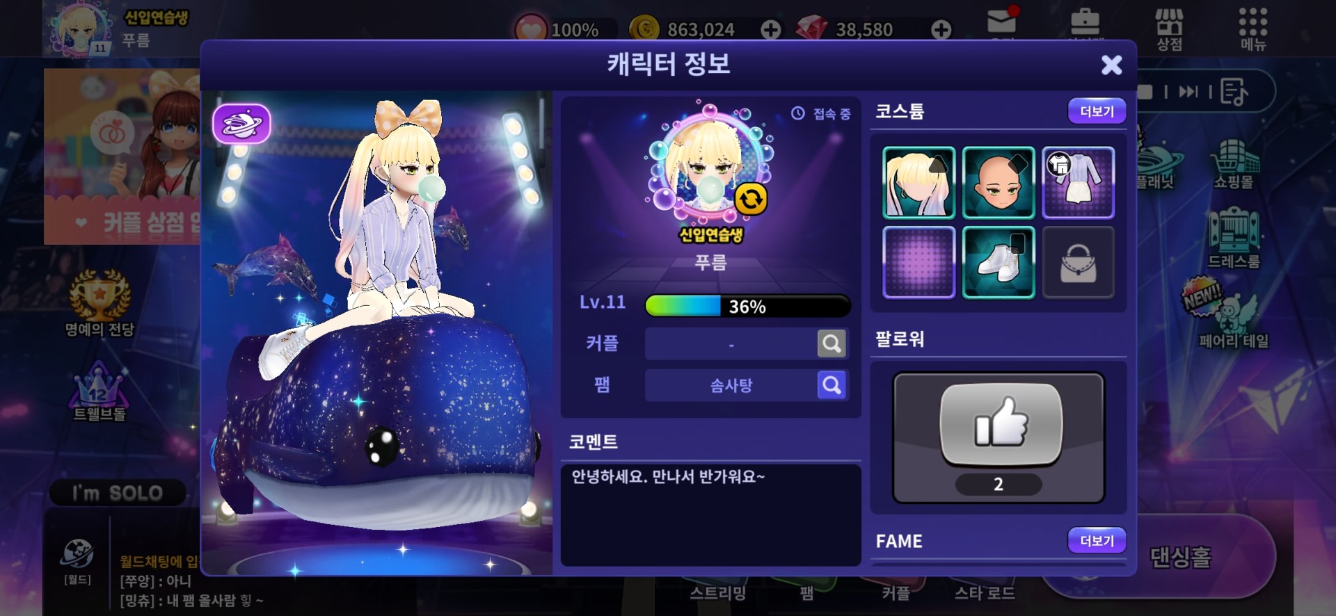 컨셉: 귀여운 아이돌 컨셉으로 꾸며봤습니다! 신비주의 컨셉을 생각하고 플래닛을 고래를 넣었어요!