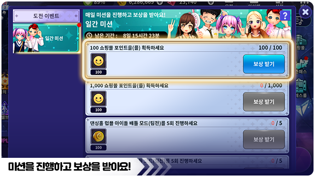 ■ 이벤트 미션 중 주간 미션은 매주 AM 04:00에 초기화돼요.