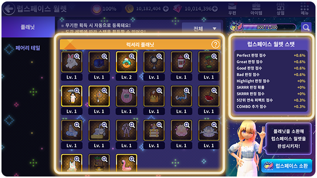 ■ 럽스페이스 월렛에서 획득한 플래닛과 페어리 테일의 레벨을 올릴 수 있어요.