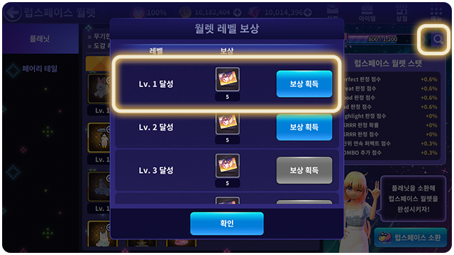 ■ 플래닛과 페어리 테일을 레벨 업하면 럽스페이스 월렛 경험치를 획득해요.