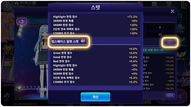 ■ 캐릭터 정보의 스탯에서 럽스페이스 월렛 스탯 정보를 확인할 수 있어요.