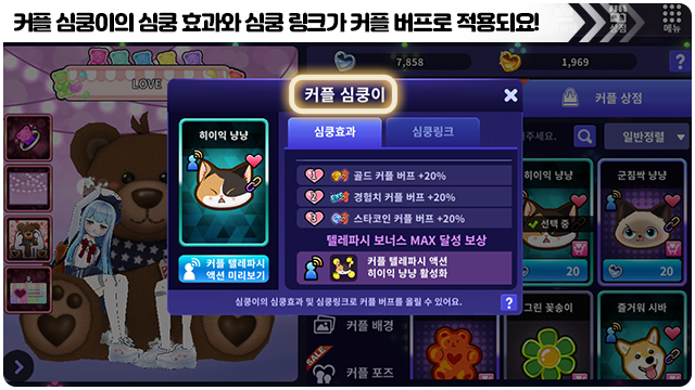 ■ 심쿵이의 커플 버프 보너스를 추가할 수 있는 심쿵 링크 컨텐츠를 준비 중이에요!
