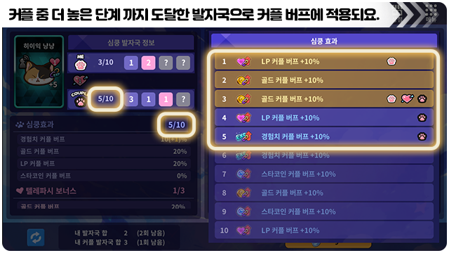 ■ 심쿵 발자국이 도달한 심쿵 효과 단계까지 커플 버프 적용 효과에 반영돼요.