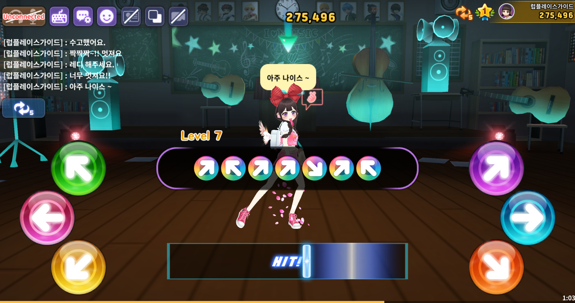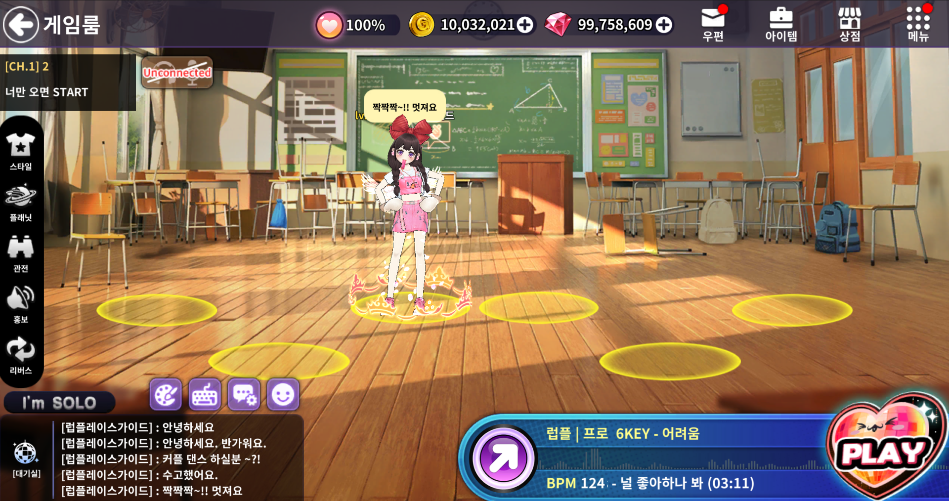 메인화면 내 채팅 또는 댄싱홀 대기 화면 등 채팅을 확인할 수 있는 공간에서