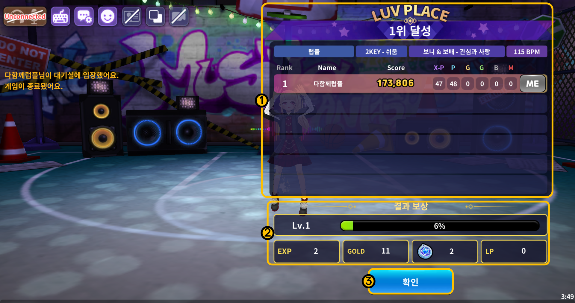 ②결과 보상을 확인할 수 있습니다.