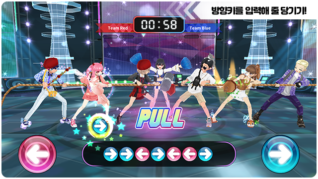 ■ 화면에 표시된 키노트에 맞춰 방향키를 입력하면 줄을 당길 수 있어요.