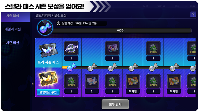 ■ 시즌 기간 동안 시즌 레벨을 올리고 스텔라 패스 보상을 획득할 수 있어요.