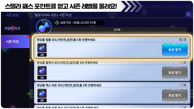■ 시즌 미션은 시즌 기간 동안 한 번만 진행할 수 있는 미션이에요.
