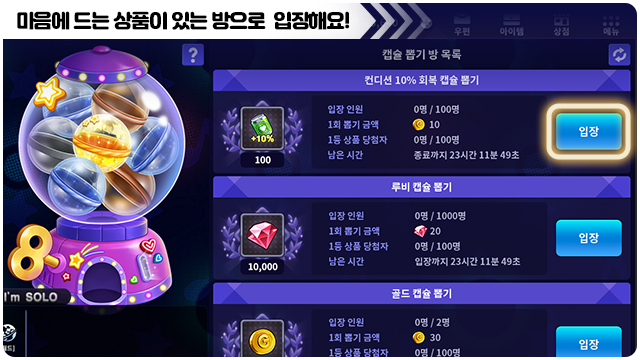 ■ 캡슐 뽑기 방에 입장하면 게임이 시작돼요.