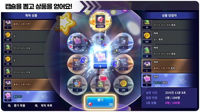 ■ 1등 상품은 개수가 한정되어 있어서 모두 소진되면 더 이상 캡슐을 뽑을 수 없어요.