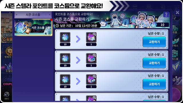 ■ 시즌 스텔라 포인트를 코스튬으로 교환할 수 있어요.