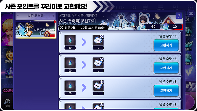 ■ 시즌 포인트로 꾸러미를 교환할 수 있어요.