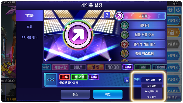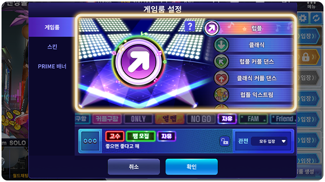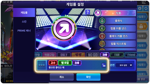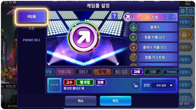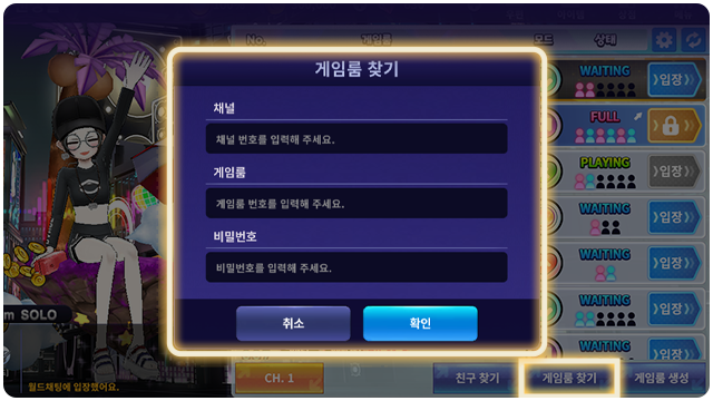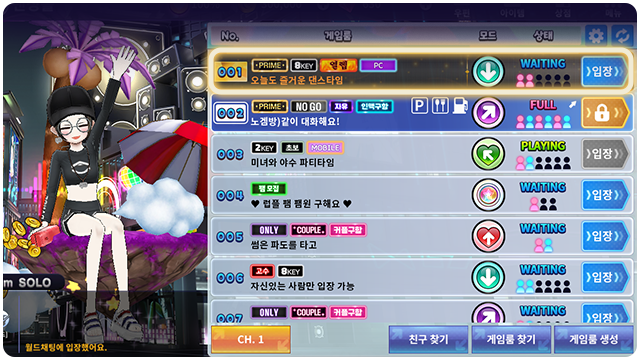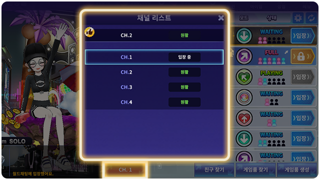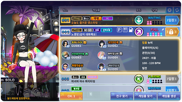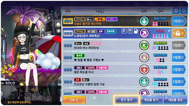 ■ 댄싱홀 로비에서 게임룸 리스트를 확인할 수 있어요.