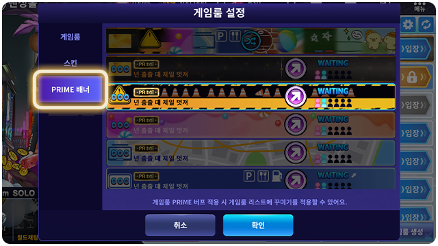 ■ 게임룸 PRIME 버프 적용 시 게임룸 PRIME 배너를 적용할 수 있어요.