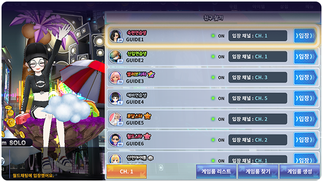 ■ 게임룸 찾기: 원하는 게임룸을 찾아서 입장할 수 있어요.