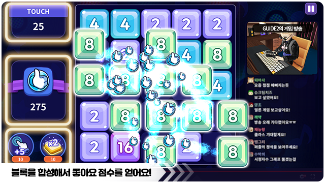 ■ 선택한 블록은 높은 숫자로 합성돼요.