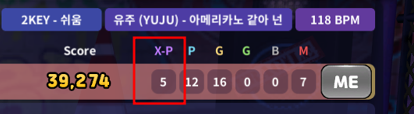 3) 게임을 플레이 하면서 획득한 X-P 판정 횟수만큼 점수를 획득합니다.