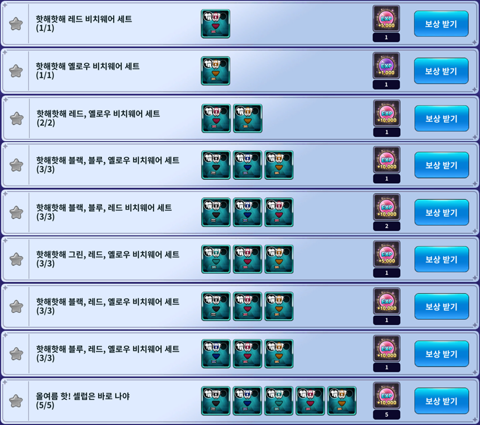 - 올여름 핫! 셀럽은 바로 나야 (보상: 10,000 EXP 5개)