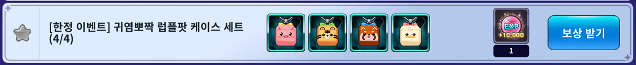 - 귀염뽀짝 럽플팟 케이스 세트 (보상: 10,000 EXP 1개)
