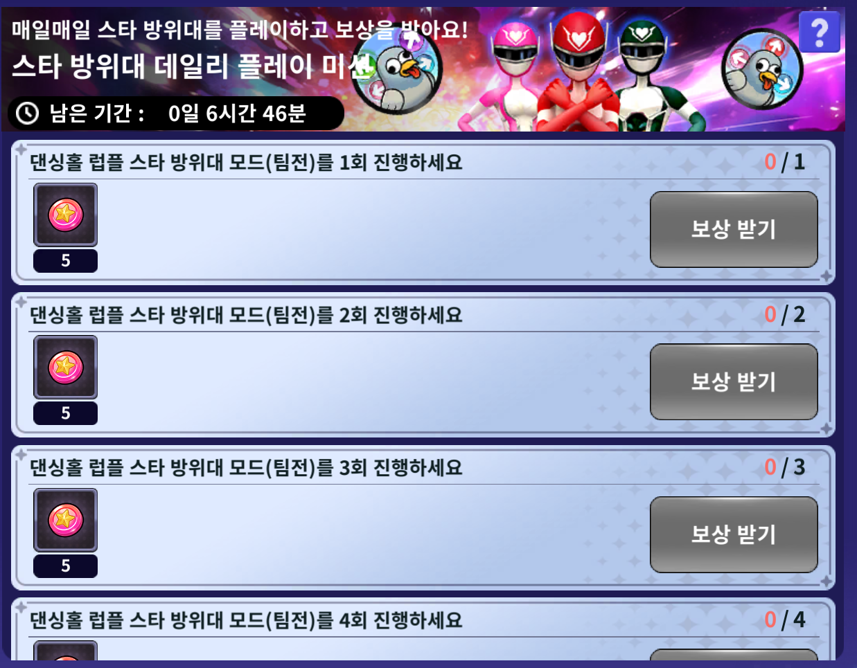 | 스타 방위대 데일리 플레이 미션 | 혼자서도 잘해요 데일리 플레이 미션 | ||