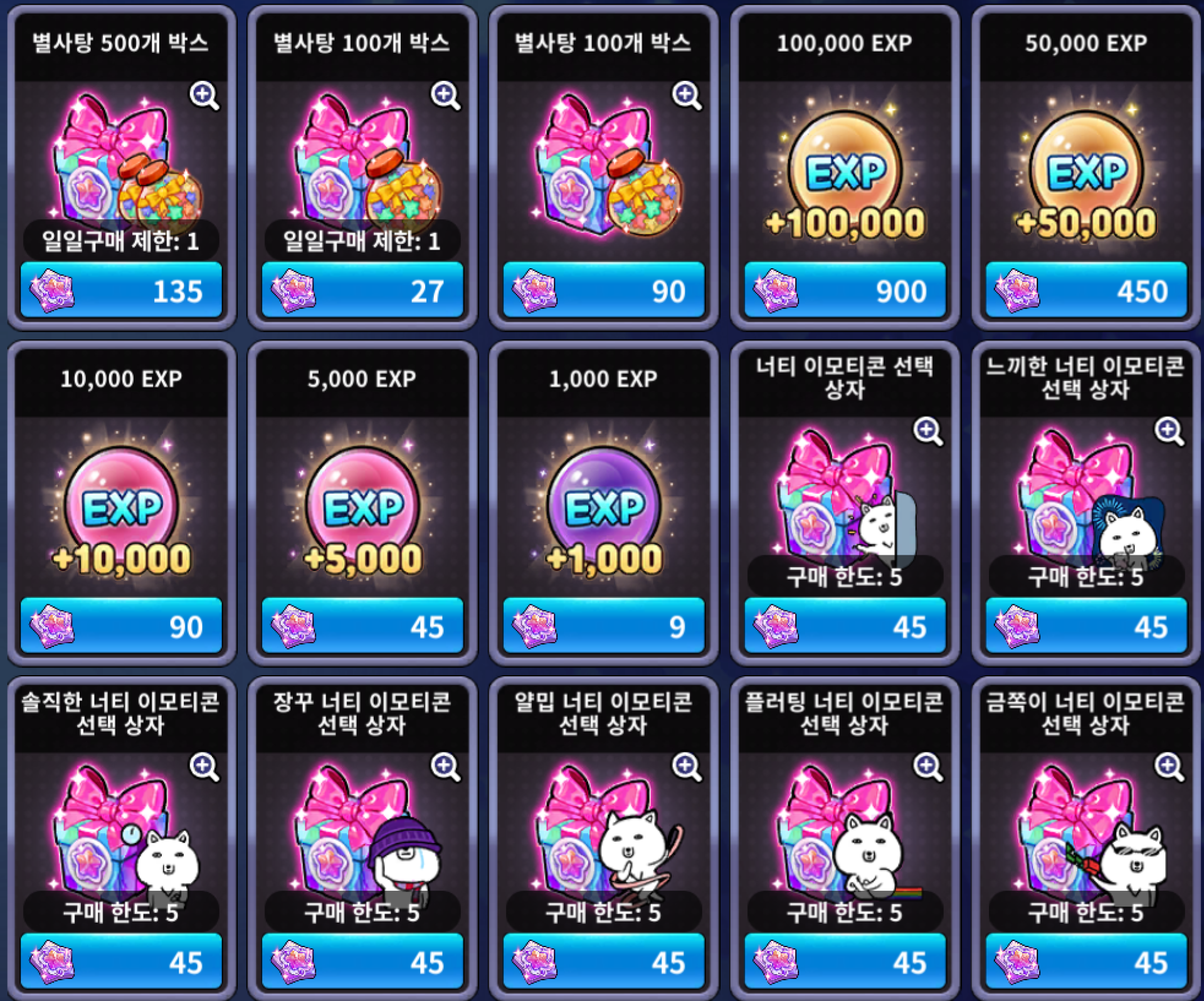 ※ 6월 2일(목) 정기 점검 이후 셀럽코인 상점에 추가된 EXP 상품 2종은 상시 판매되는 상품이며,