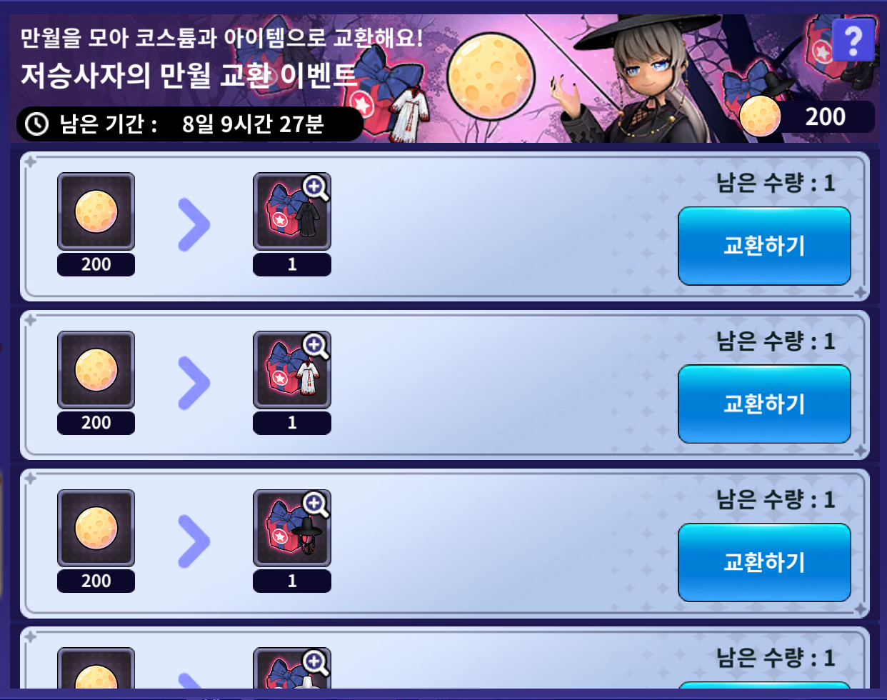 ⭐저승사자의 만월 교환 이벤트 교환 품목