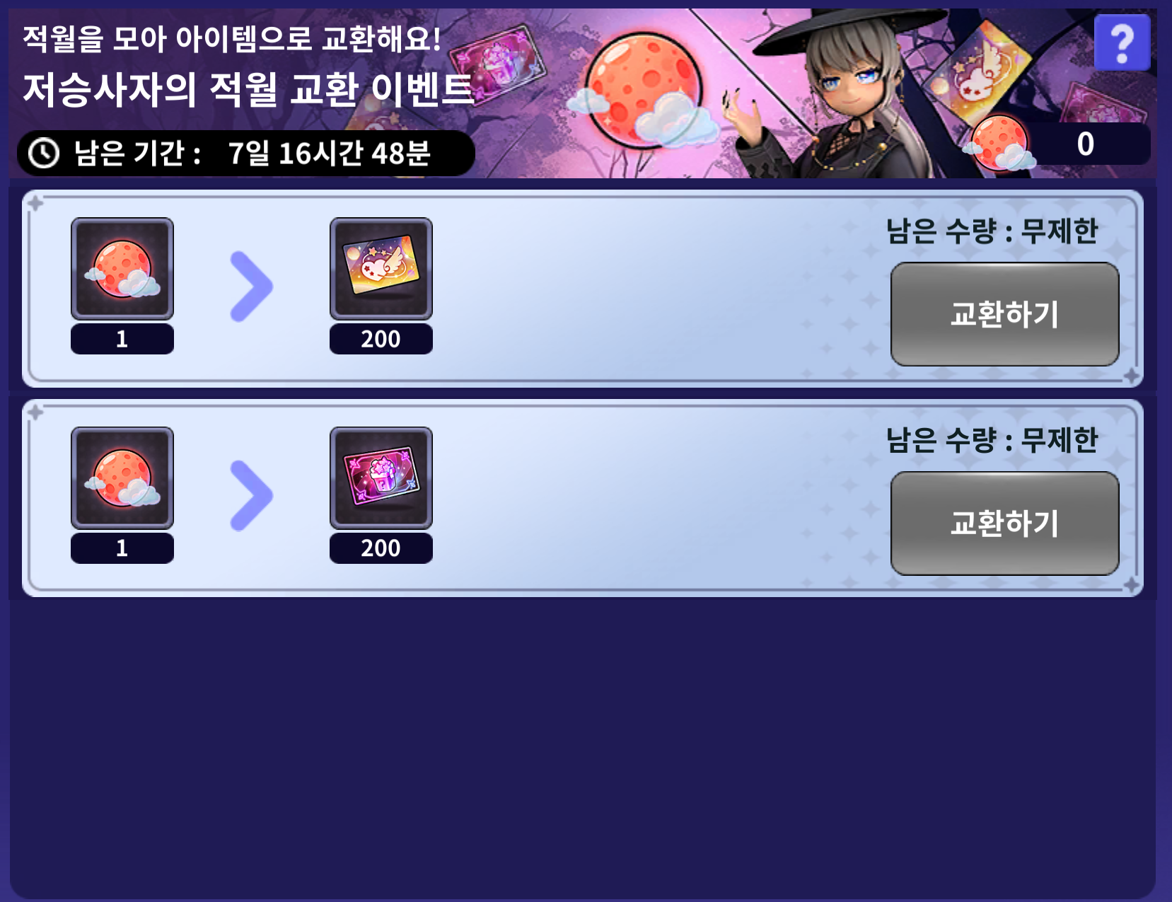 ⭐저승사자의 적월 교환 이벤트 교환 품목