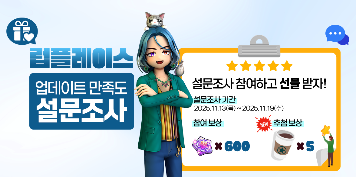 럽플레이스 업데이트 만족도 설문조사 이벤트 안내 (25년 11월 1주차) LUVPLACE