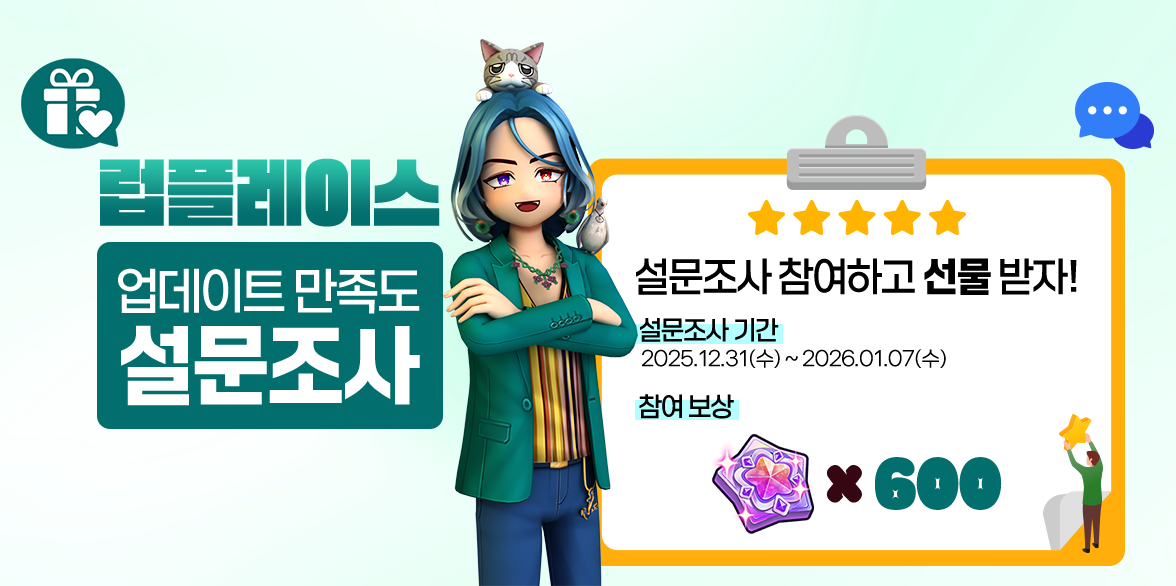 럽플레이스 업데이트 만족도 설문조사 이벤트 안내 (25년 12월 4주차) LUVPLACE