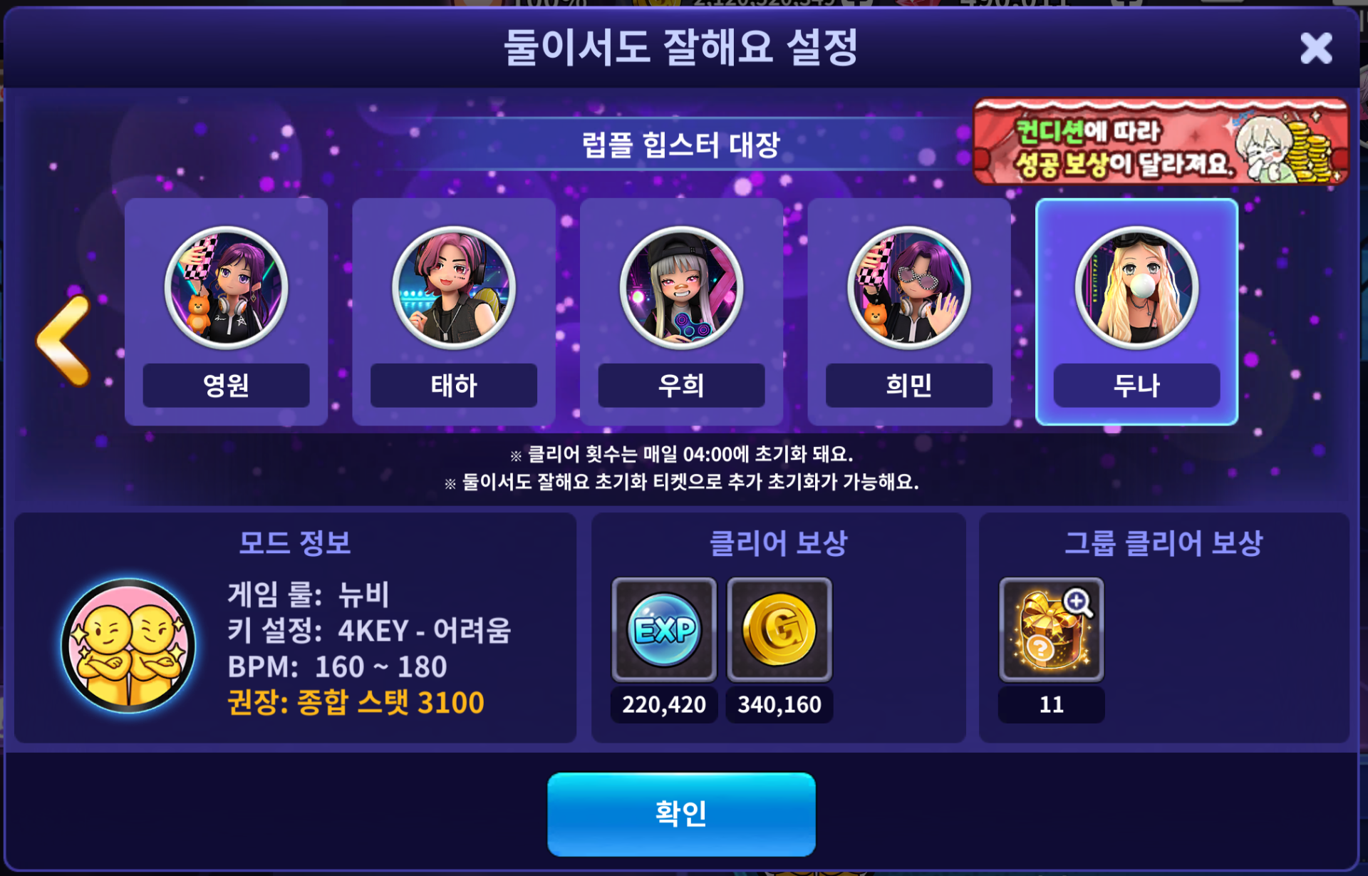 [혼자서도 잘해요 & 둘이서도 잘해요 클리어 보상 2배 UP 이벤트]