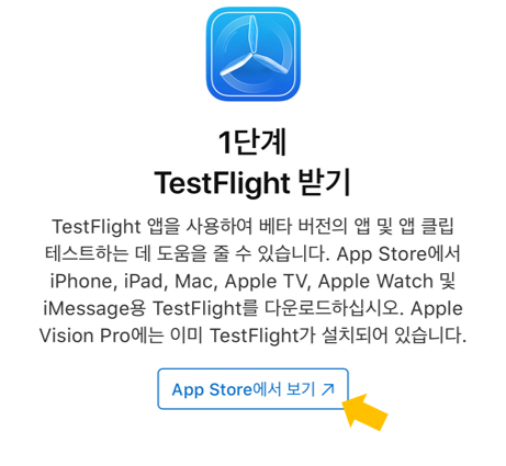 ① 우선 [App Store에서 보기] 버튼을 터치하여 TestFlight를 다운로드 받아주세요.