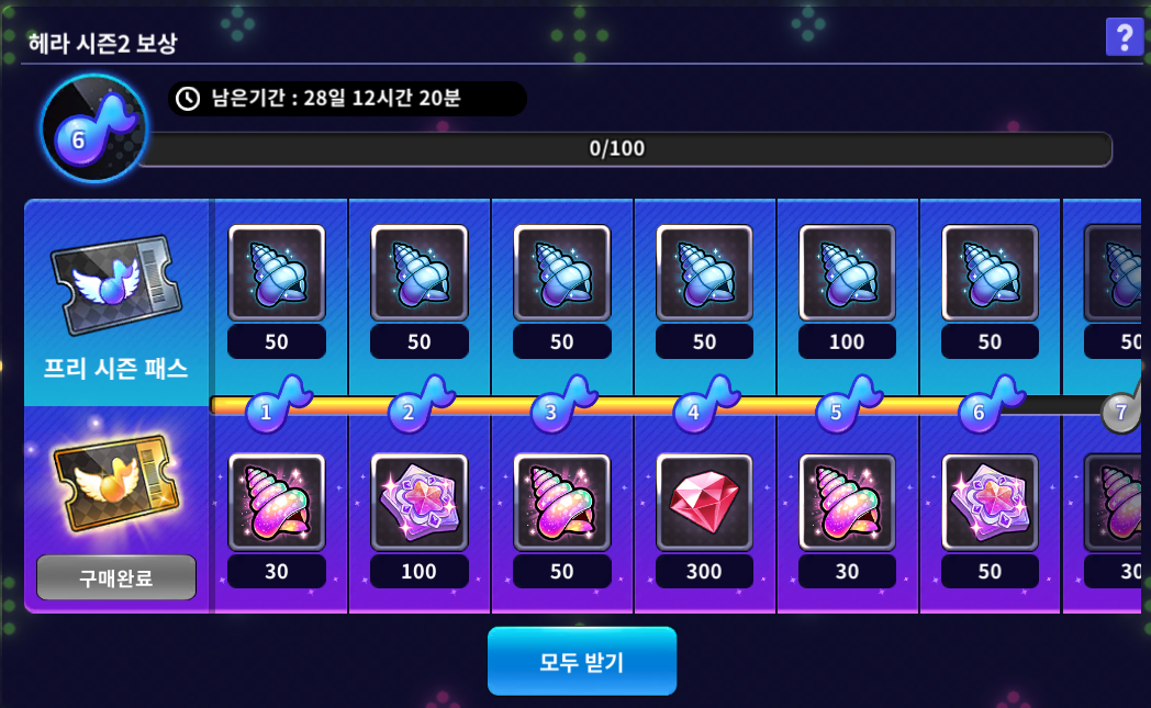 | 수집 보상 | 시즌 스텔라 포인트 50 | |