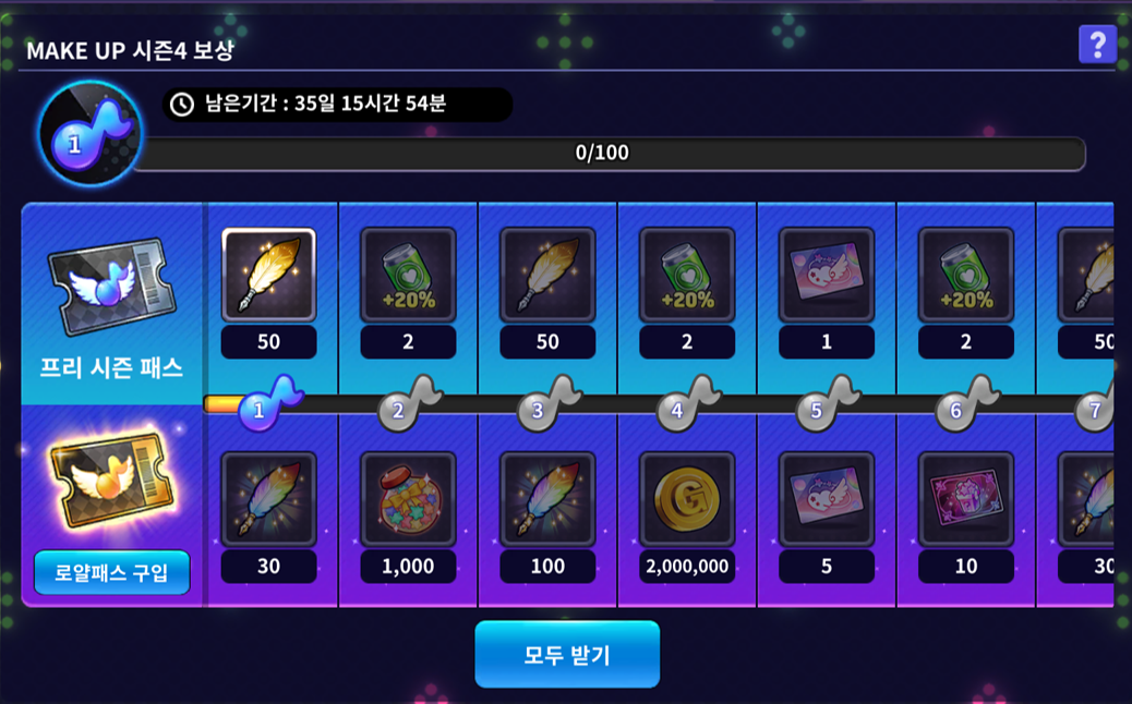 | 수집 보상 | 호락호락하지 않은 러부 이모티콘 박스 | ※ 수집 보상은 [메인화면] - [메뉴] - [수집 보상] - [시즌 코스튬]에서 확인할 수 있습니다. | |