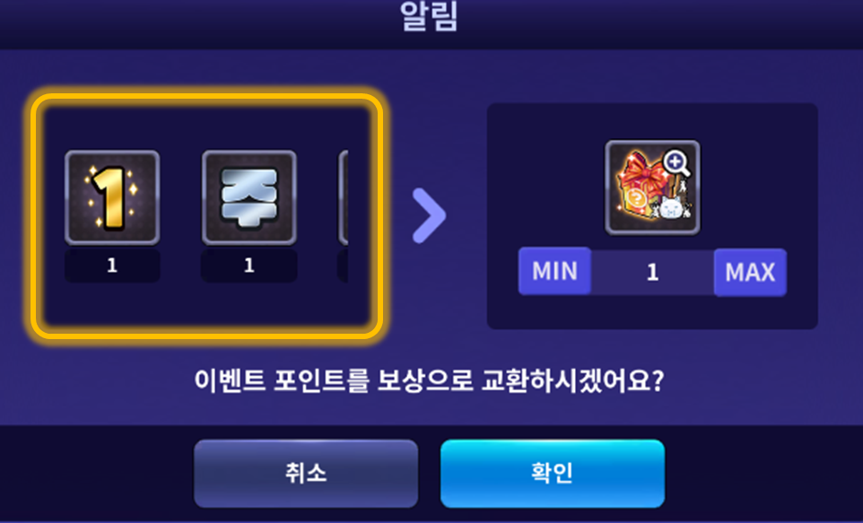 현재 이벤트 보상 교환 시 필요한 소모 아이템이 3종류 이상일 경우,