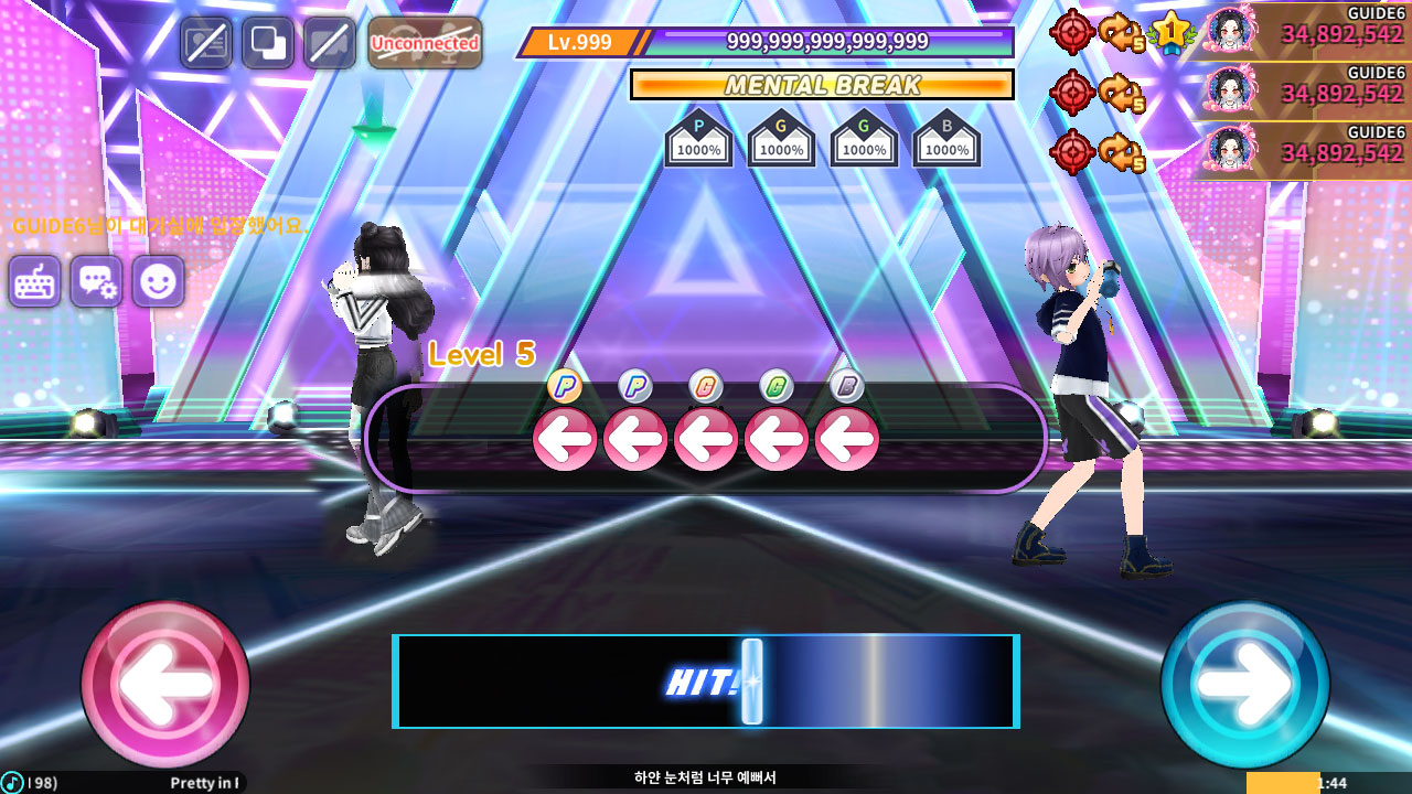 - 인게임에서는 노트 상단에 판정 이미지가 출력되며, 해당 판정에 성공하면 스코어 버프를 획득할 수 있습니다.