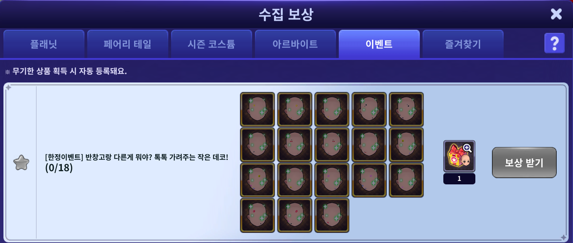 | 수집 목록 | 수집 보상 |