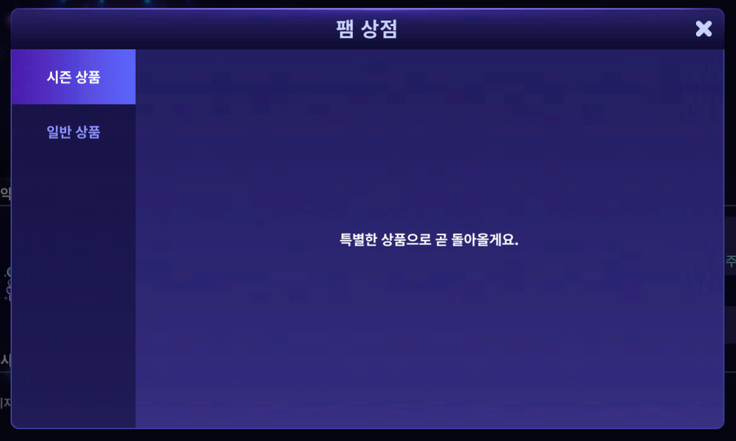 1. [팸] - [팸 상점] - [시즌 상품]이 노출되지 않는 현상