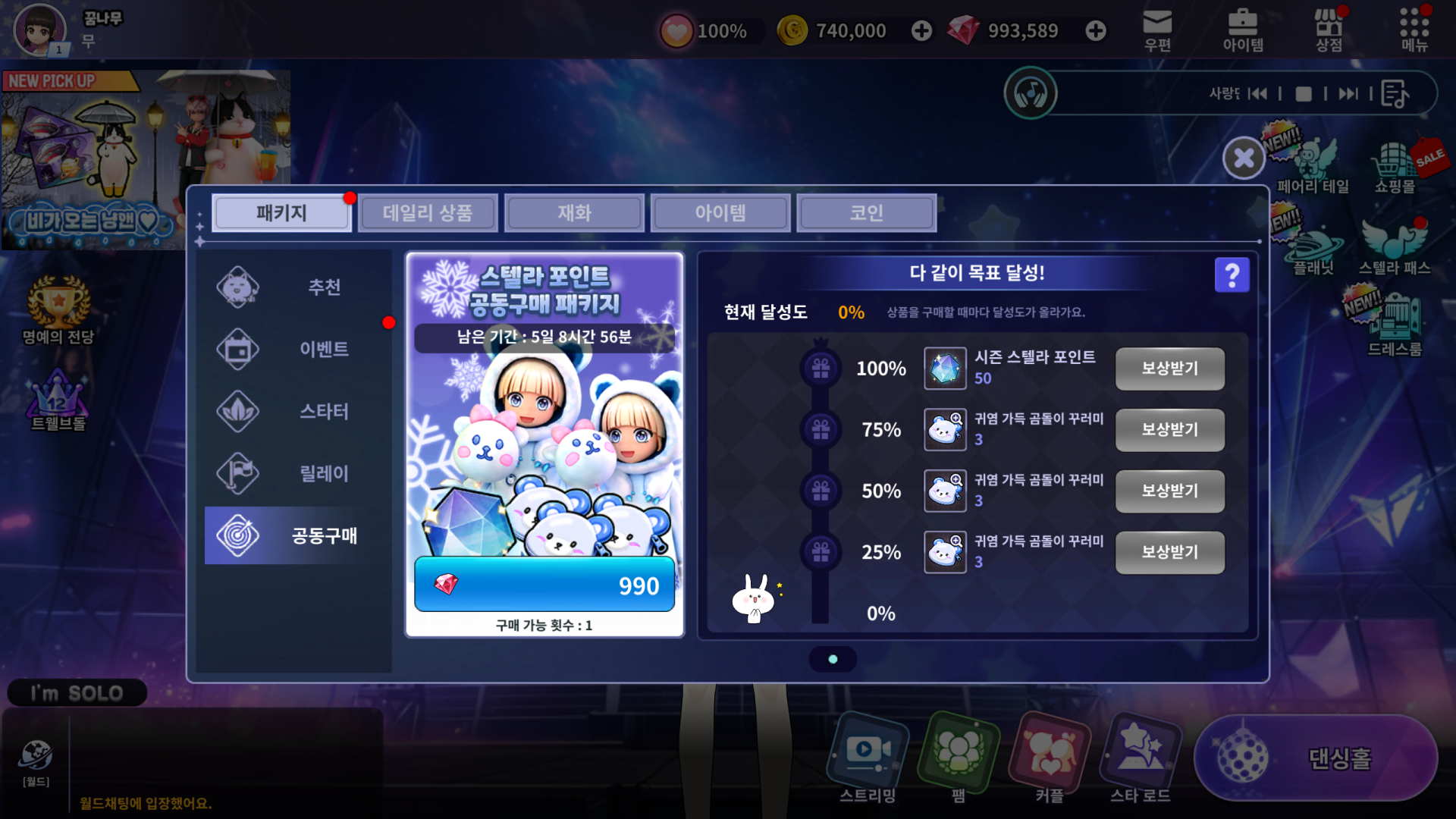 | 공동구매 75% 보상 | 시즌 꾸러미 3개 | |||