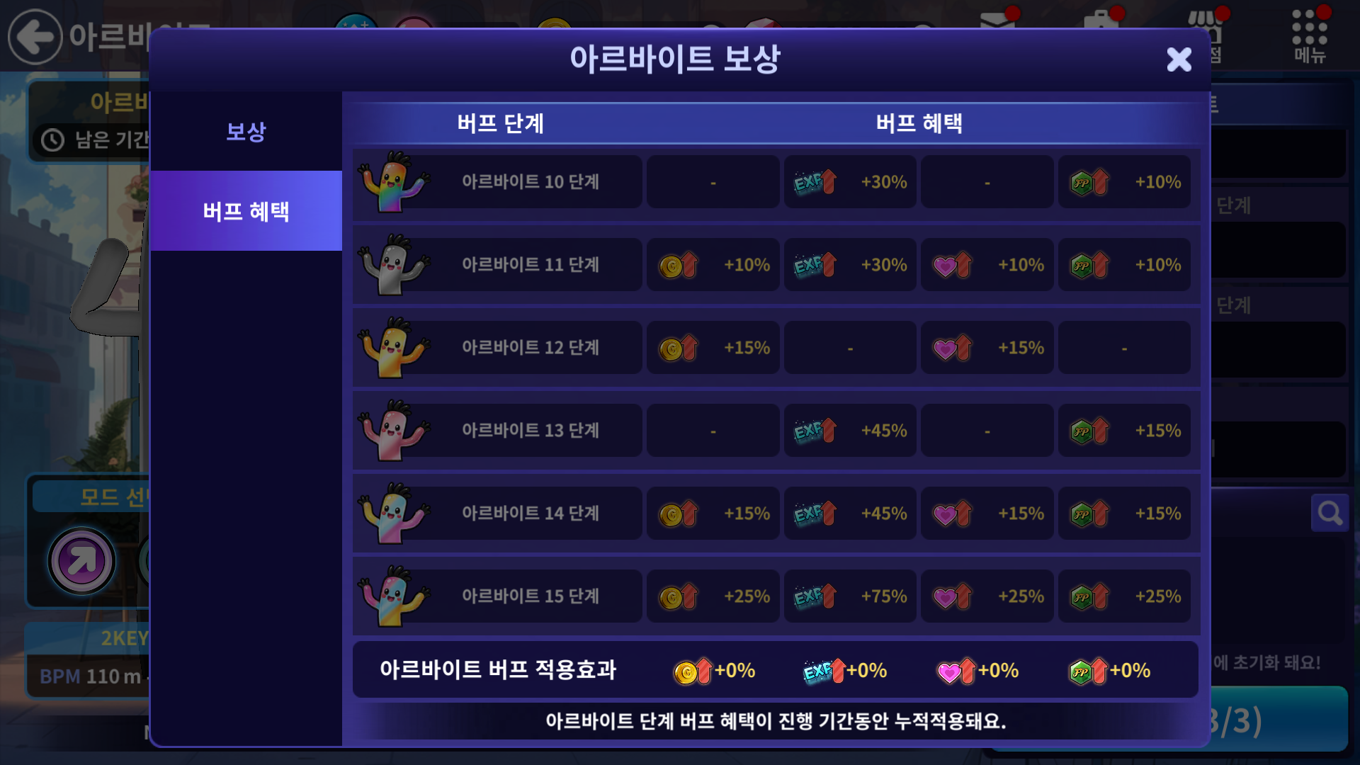 🌟아르바이트 시즌 9 한정 이벤트 - 아르바이트 단계 별 경험치 버프 혜택이 기존 대비 3배로 증가합니다.