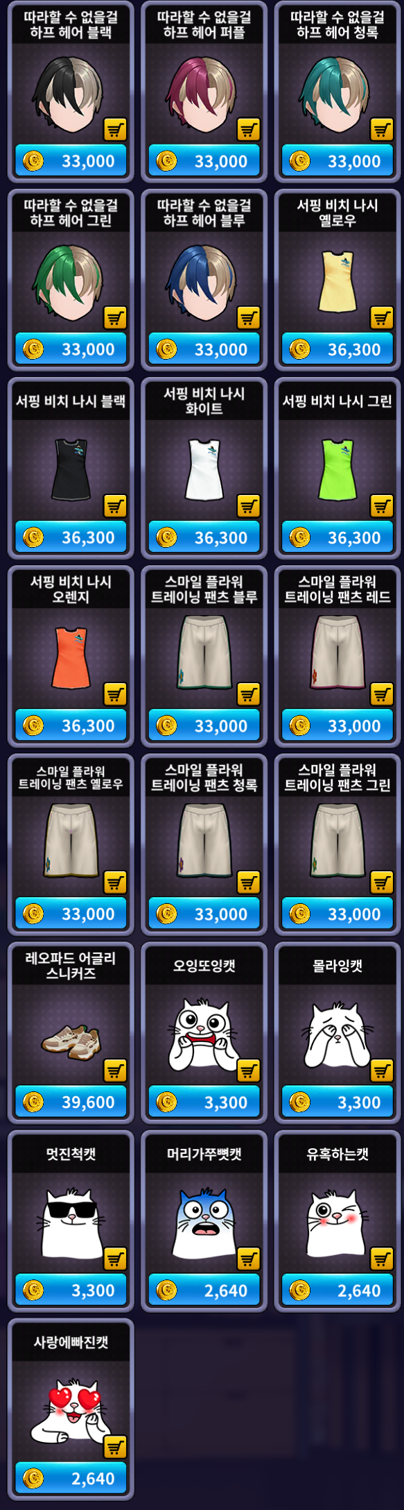 [프리미엄 샵] 추가 상품 (여성)