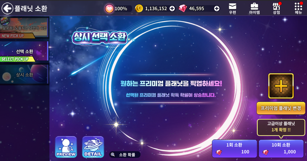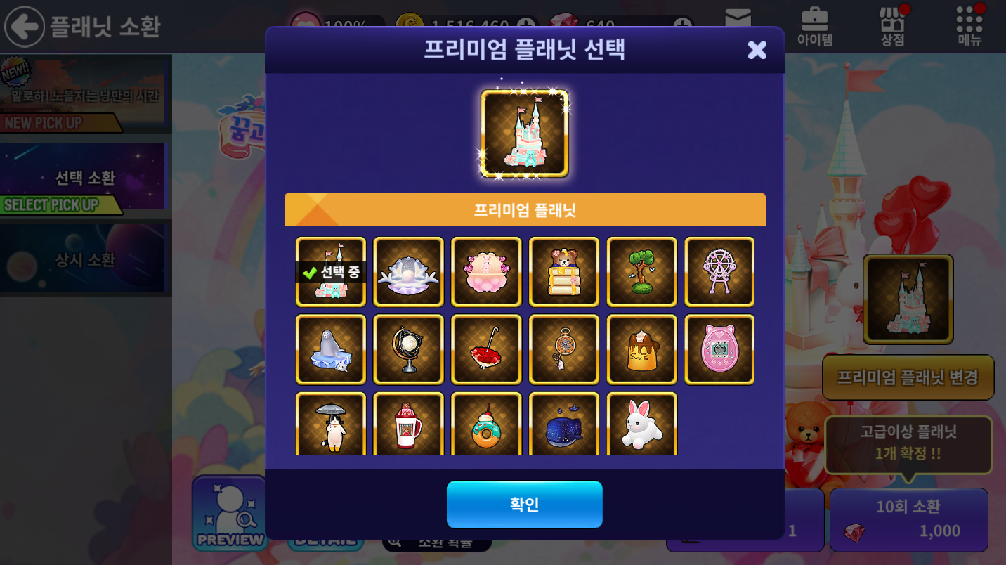 □ 선택 소환을 통해 직접 원하는 프리미엄 플래닛 1종을 선택하여 소환 확률을 높일 수 있습니다.