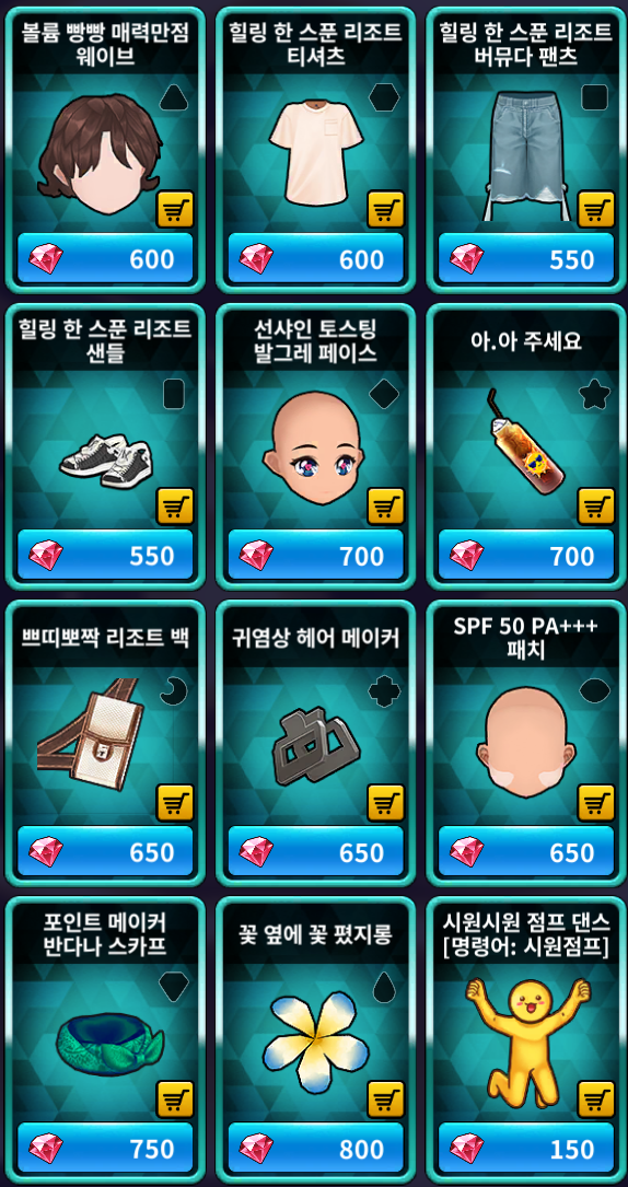 [골드 샵] 추가 상품 (남성)