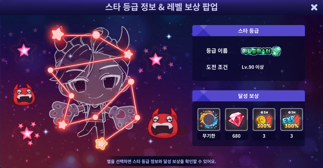 □ 스타 등급 정보 팝업에 신규 스타 등급을 확인할 수 있는 '마스터 별자리'가 추가됩니다.