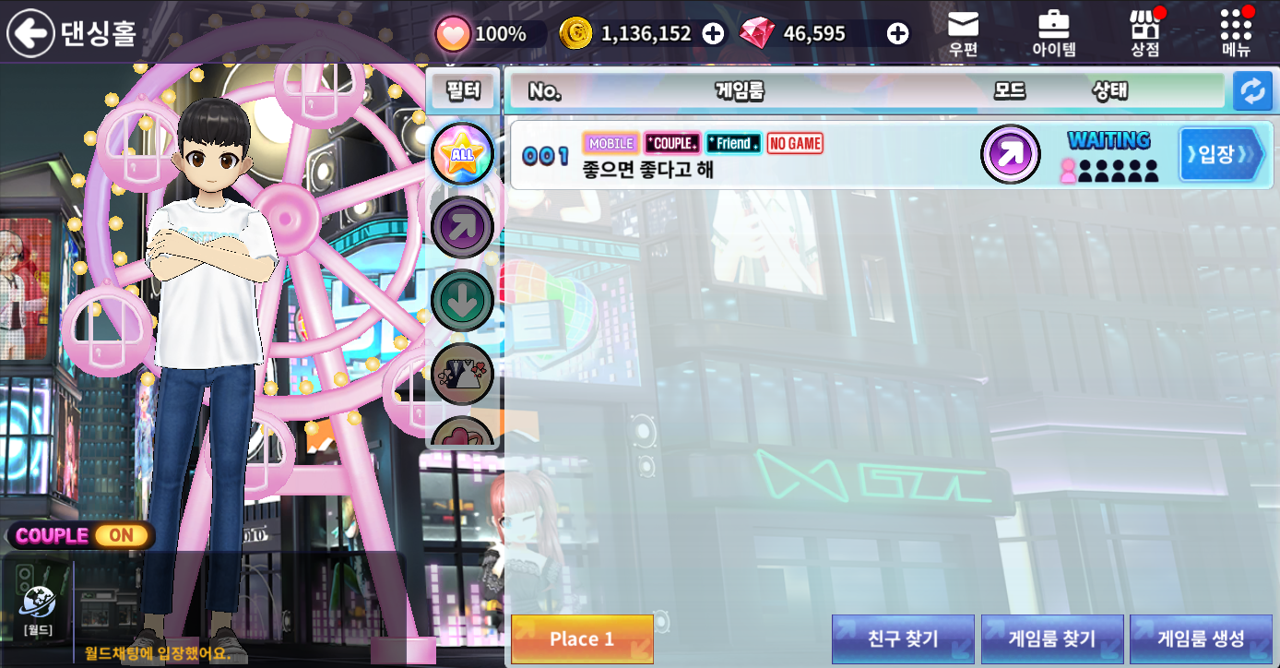 □ 댄싱홀에서 게임룸 생성 후 일정 시간 동안 게임을 시작하지 않을 경우, 게임룸에 'NO GAME' 마크가 추가됩니다.