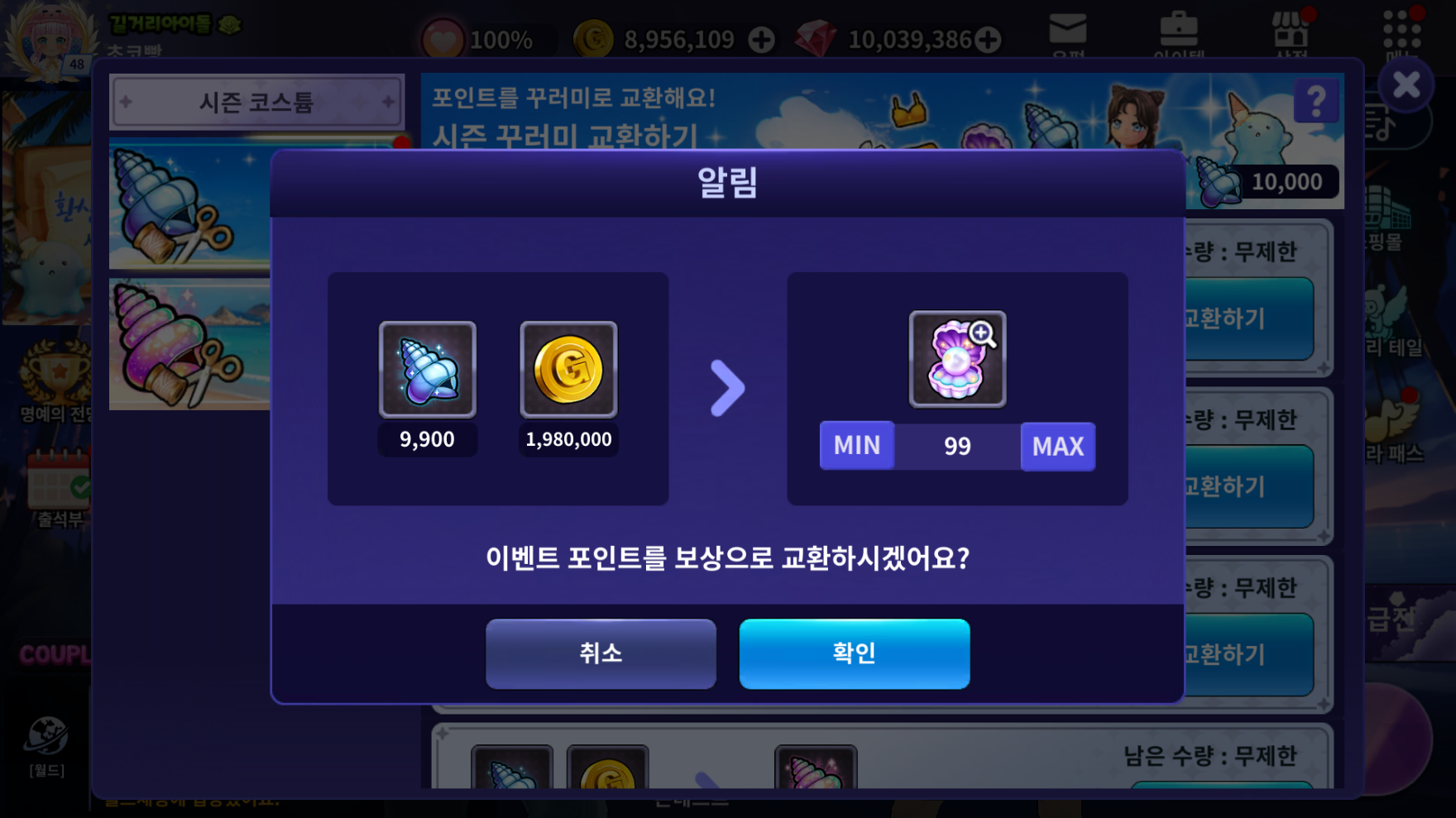 □ 이제 이벤트 아이템을 교환할 때, 수량을 설정하여 교환할 수 있도록 변경됩니다.