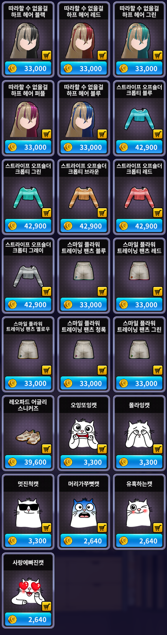 [골드 샵] 추가 상품 (여성)