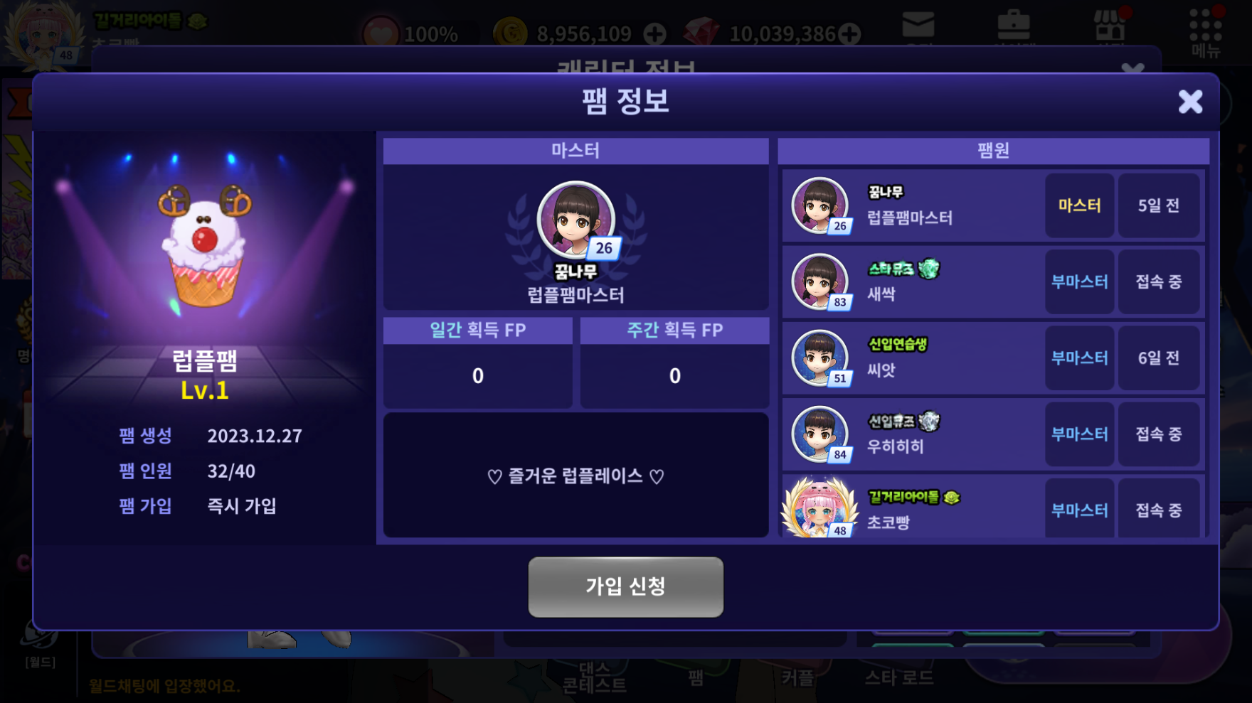 □ 이제 팸 정보 팝업에서 소속 팸원 리스트를 확인할 수 있습니다.