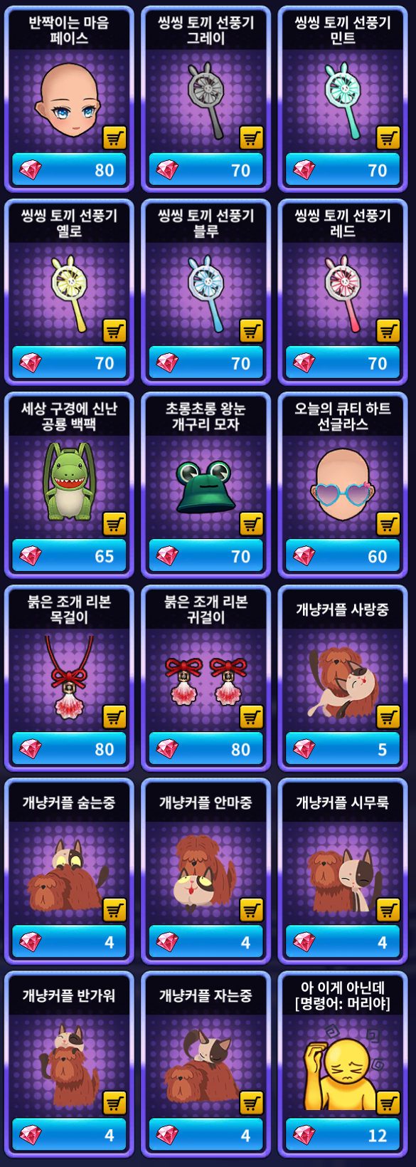 [루비 샵] 추가 상품 (공통)