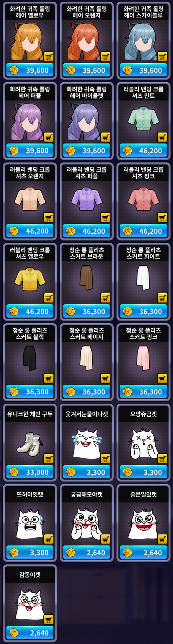 [골드 샵] 추가 상품 (여성)